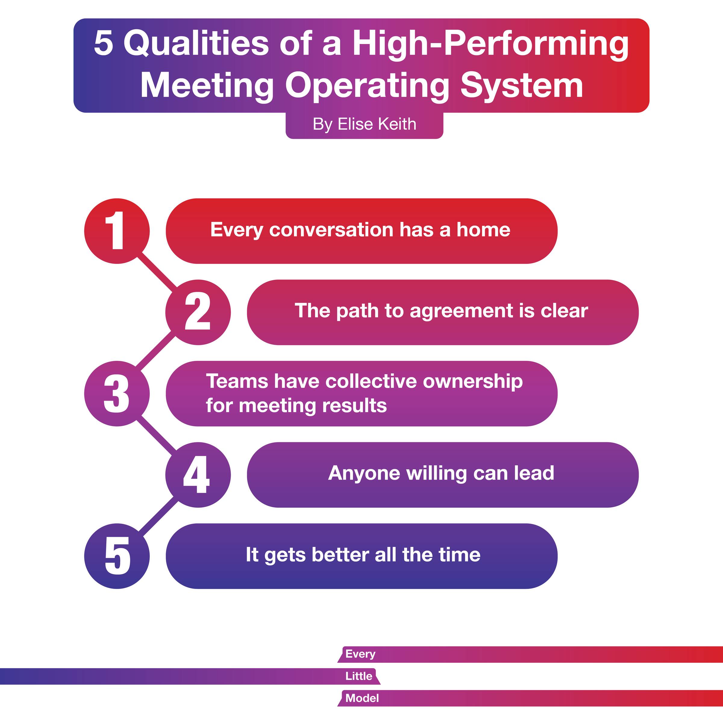 In this episode, John and Tricia talk with guest, Elise Keith to explore the MOS (Meeting Operating System). They discuss insights and techniques about the world of designing better ways of gathering and interacting.